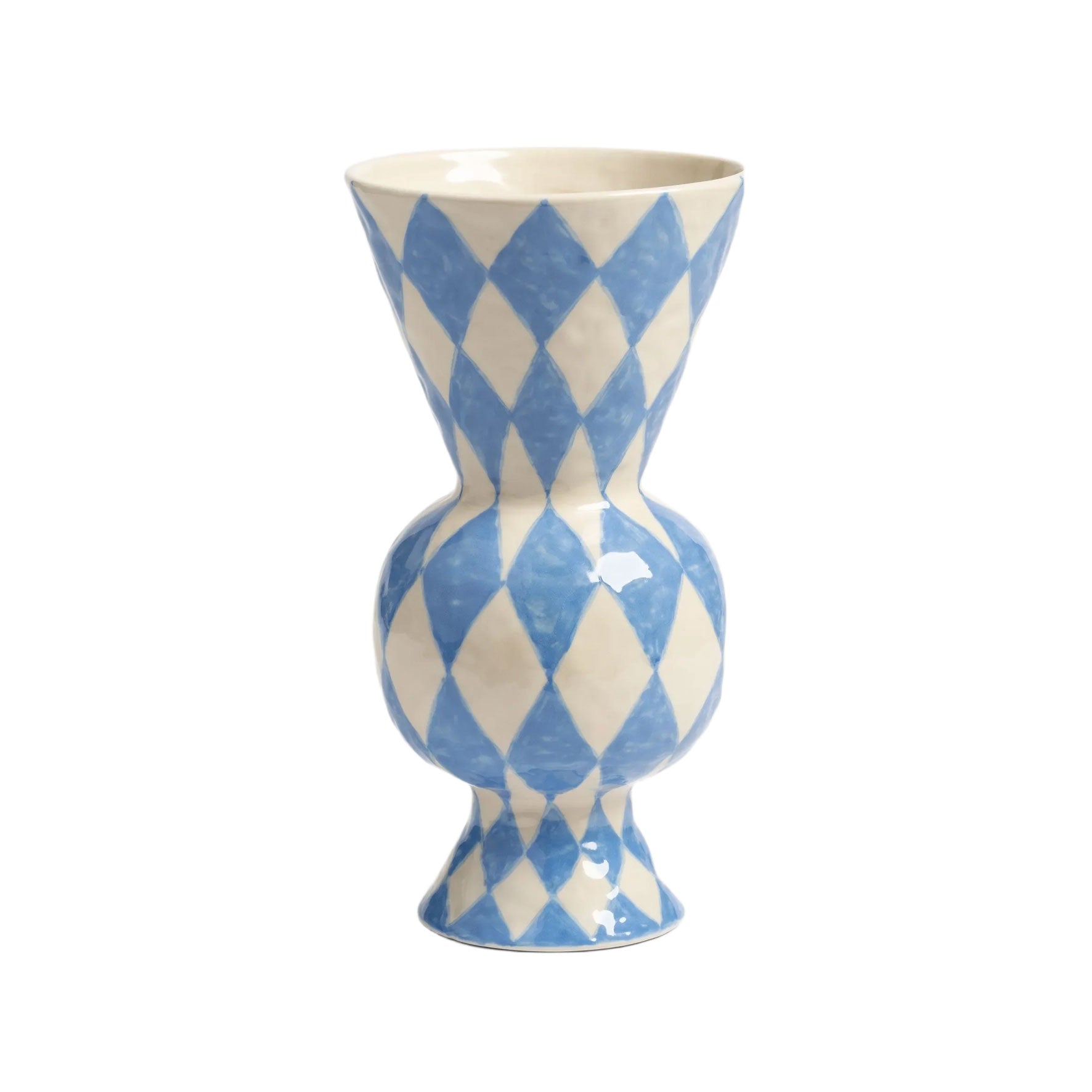 .Porta una ventata di energia e raffinatezza nei tuoi ambienti con il vaso rombico blu di Klevering. Chic e grafico, questo vaso, decorato con motivi geometrici dipinti a mano, dona vitalità e personalità a ogni spazio. Le linee leggermente irregolari e il lavoro artigianale rendono ogni pezzo unico, perfetto per chi cerca un complemento d’arredo originale e distintivo.