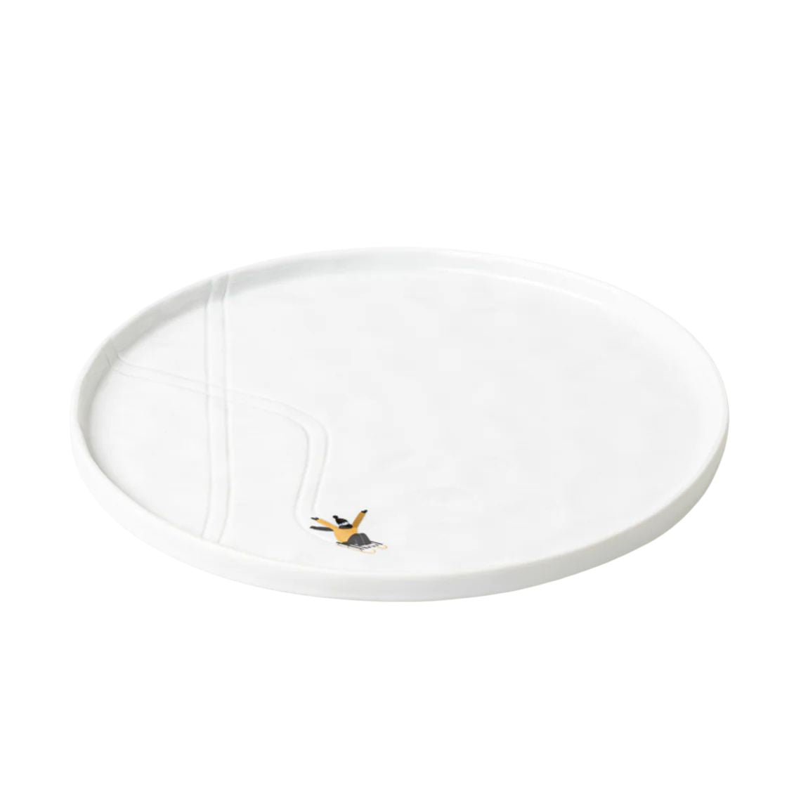 .Il piatto Uomo sulla slitta in porcellana firmato Räder racconta la magia delle feste attraverso una delicata illustrazione: un uomo che scivola sulla neve con la sua slitta, simbolo di leggerezza e spensieratezza. Ogni dettaglio è pensato per evocare calore, eleganza e un’eleganza silenziosa tipica del design nordico.