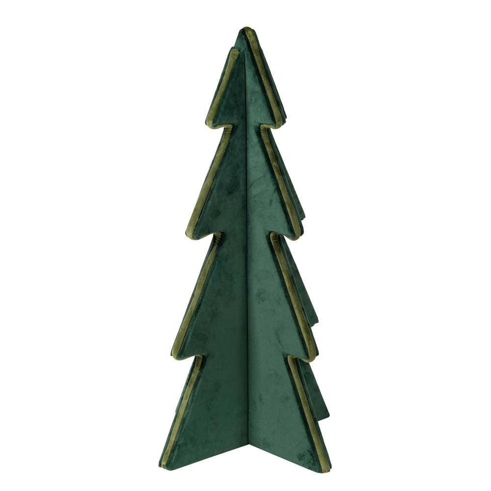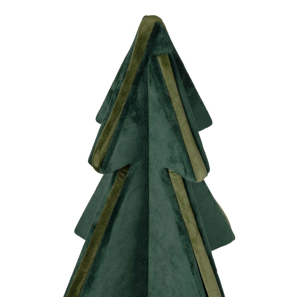.This dark green velvet decorative tree with a light green border offers an elegant and contemporary take on Christmas. The velvety texture enhances the depth of the dark green, while the light green border creates a delicate tone-on-tone contrast, lending balance and brightness to the composition.