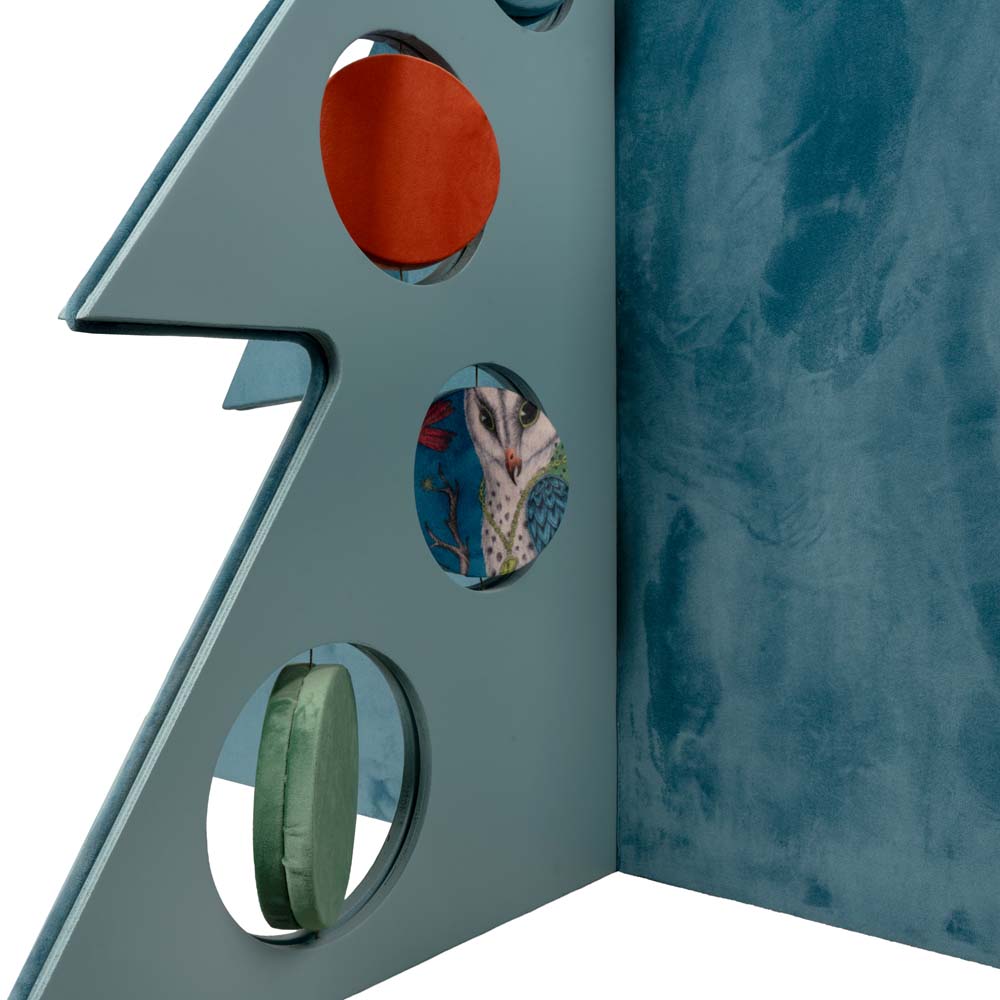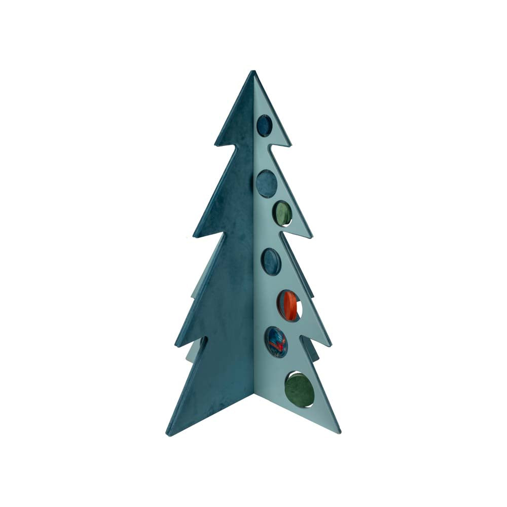 Ce sapin décoratif, orné de boules en bois laqué et de velours bleu ciel, réinvente Noël avec une élégance contemporaine et des détails raffinés. Les boules en bois laqué reflètent délicatement la lumière, tandis que le velours bleu ciel, doux et lumineux, apporte profondeur et harmonie chromatique à l'ensemble.