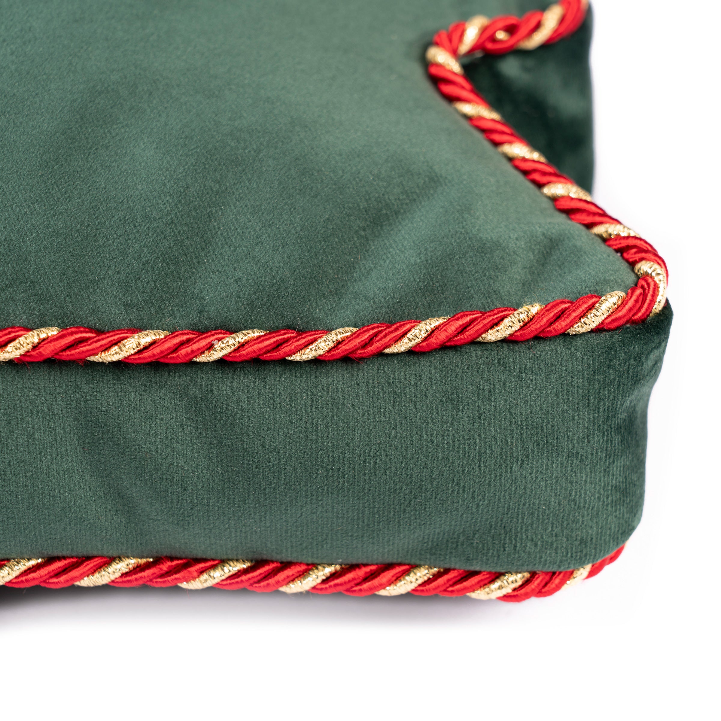 Explorez l'atmosphère festive avec notre oreiller arbre de Noël rembourré. Le tissu en velours vert, enrichi par des détails de cordon rouge et blanc, capture l'essence magique des vacances. Chaque détail est conçu pour transformer votre espace en un refuge accueillant de joie de Noël.