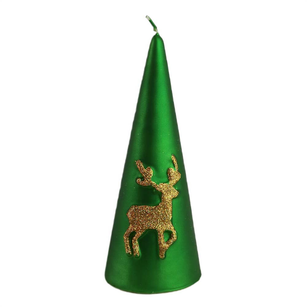 La candela a cono verde con renna oro di Firenze Candele è un raffinato elemento decorativo realizzato a mano, perfetto per portare nella tua casa la magia del Natale con uno stile sofisticato e contemporaneo.