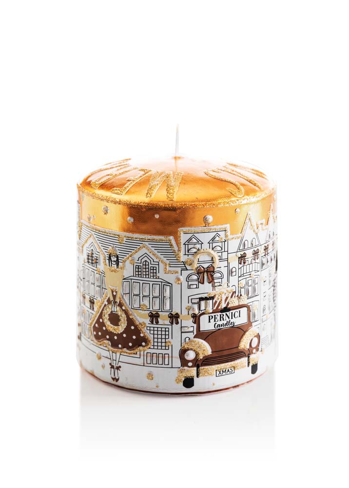 La candela natalizia Pernici, realizzata a mano con cura artigianale, è un raffinato elemento decorativo capace di creare un’atmosfera calda e suggestiva. Dopo l’accensione, la fiamma diffonde una luce morbida che filtra attraverso la cera, illuminando la decorazione applicata e dando vita ai paesaggi natalizi raffigurati sulla superficie.