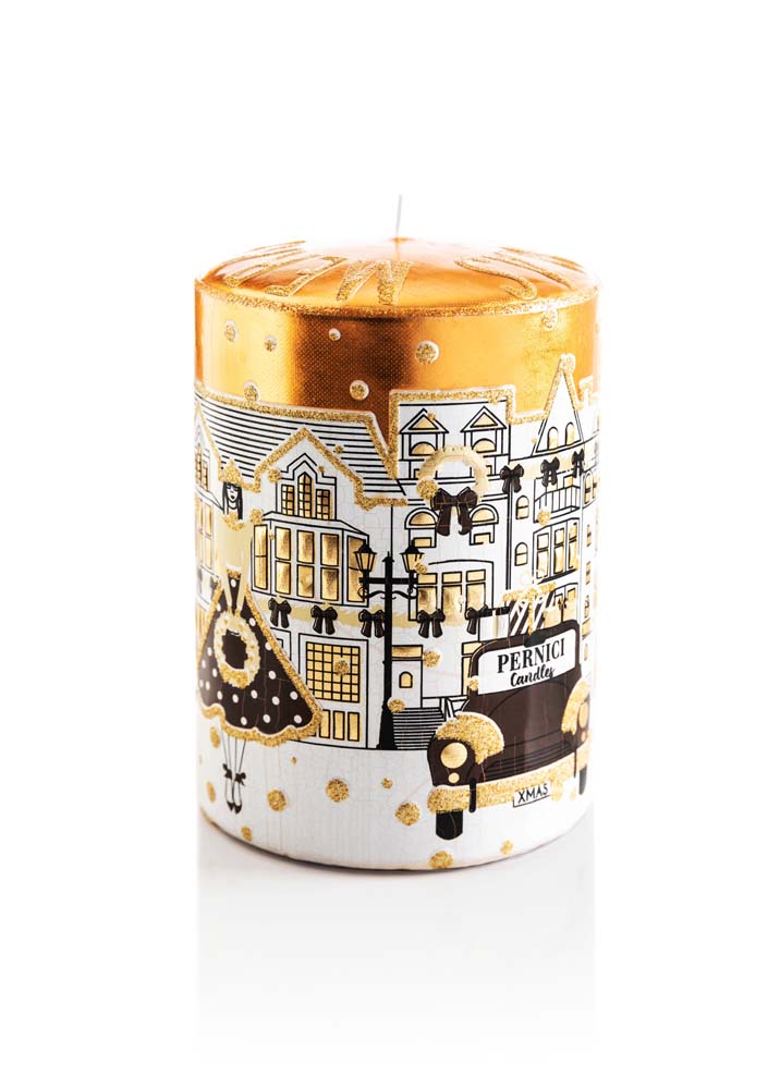 La candela natalizia Pernici, realizzata a mano con maestria artigianale, è una creazione decorativa che unisce calore, luce e poesia. Dopo l’accensione, la fiamma interna illumina delicatamente la decorazione applicata, facendo risplendere i paesaggi natalizi riprodotti sulla superficie e creando un effetto luminoso suggestivo e raffinato.