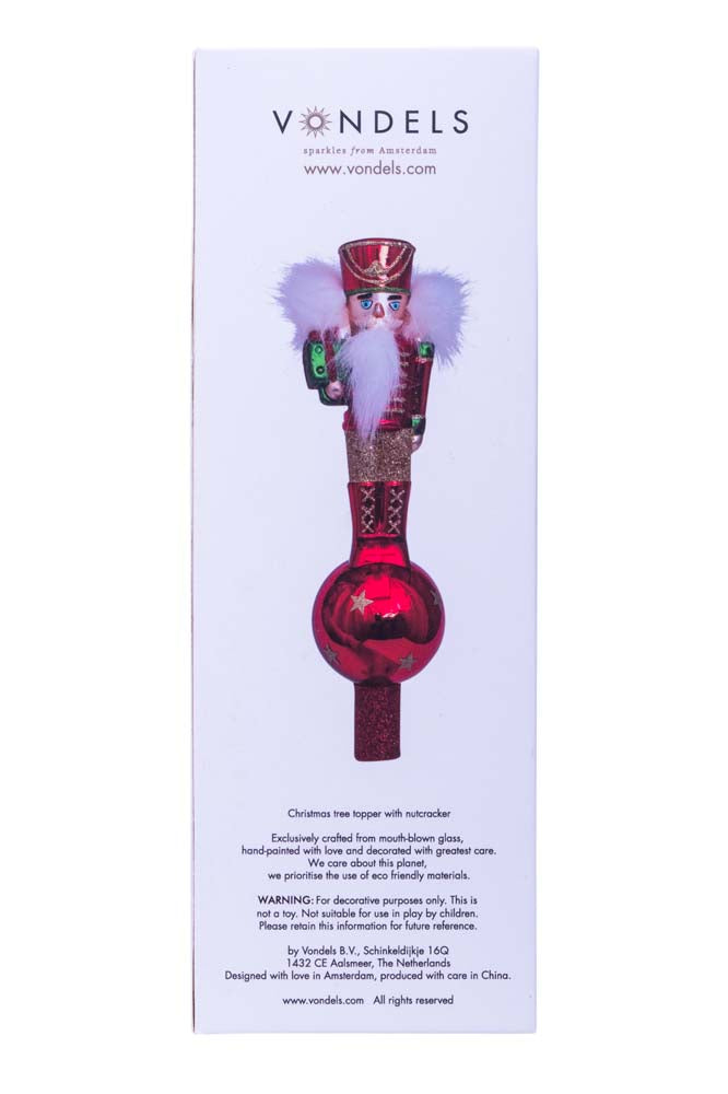 Aggiungilo subito al carrello e completa il tuo albero con l’eleganza natalizia del puntale Schiaccianoci firmato Vondels.